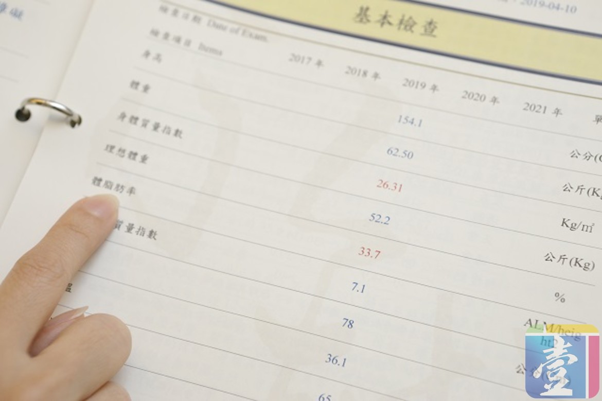 醫師從女性健檢資料中發現,女性在血脂、內臟脂肪的數字也常出現紅字。(楊弘熙攝)