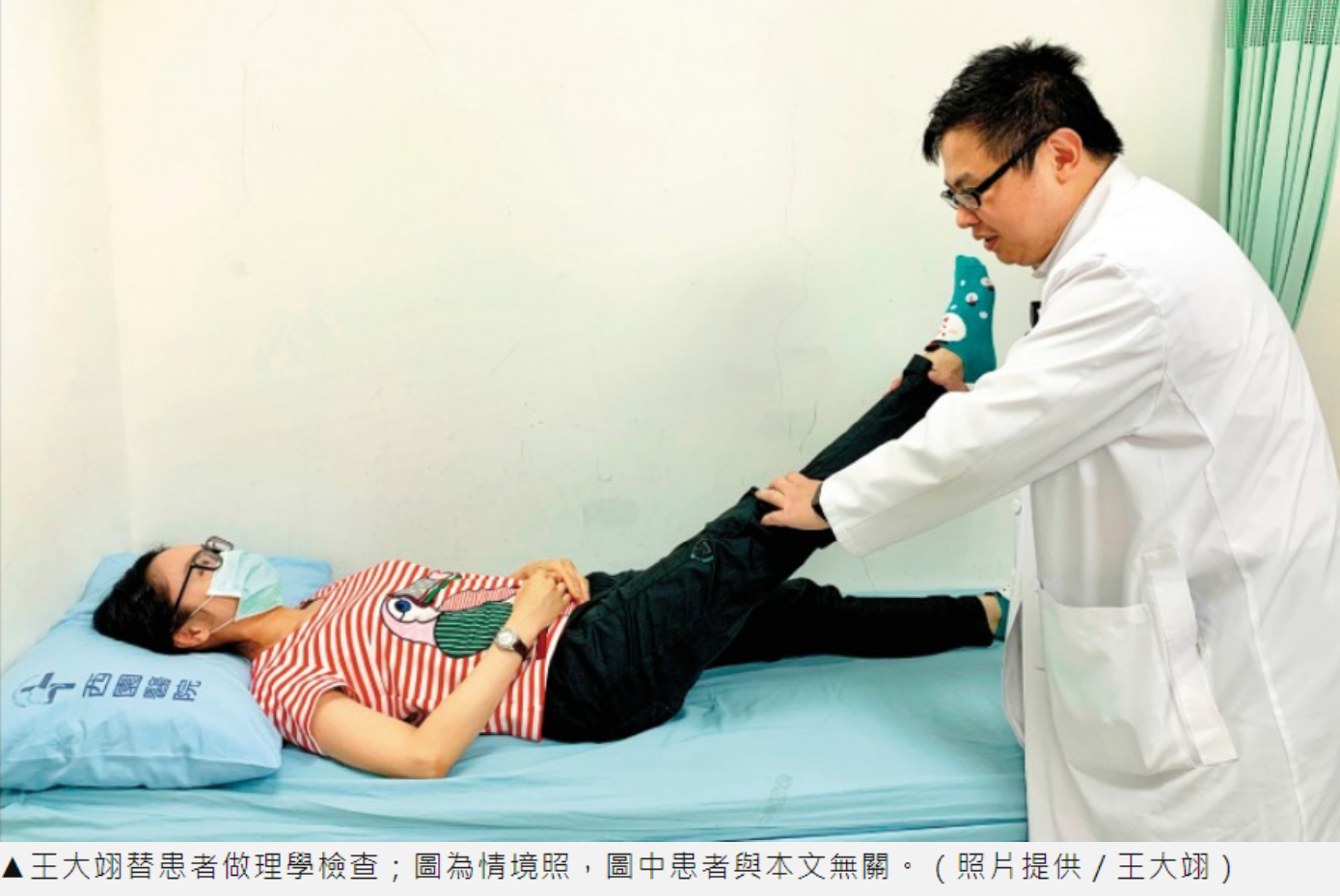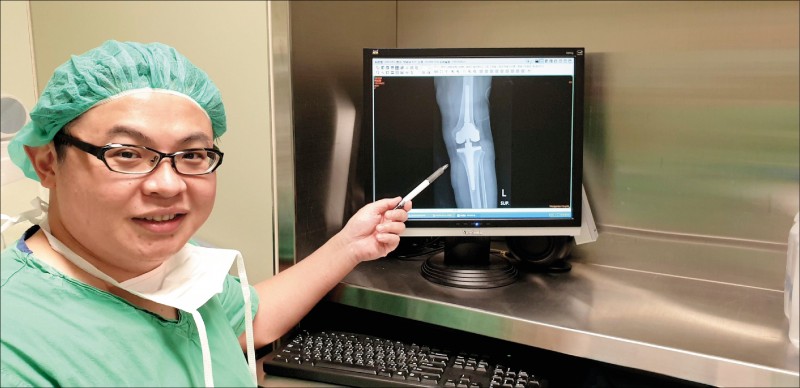 ▲王大翊醫師指出人工膝關節置放處。(照片提供/王大翊)