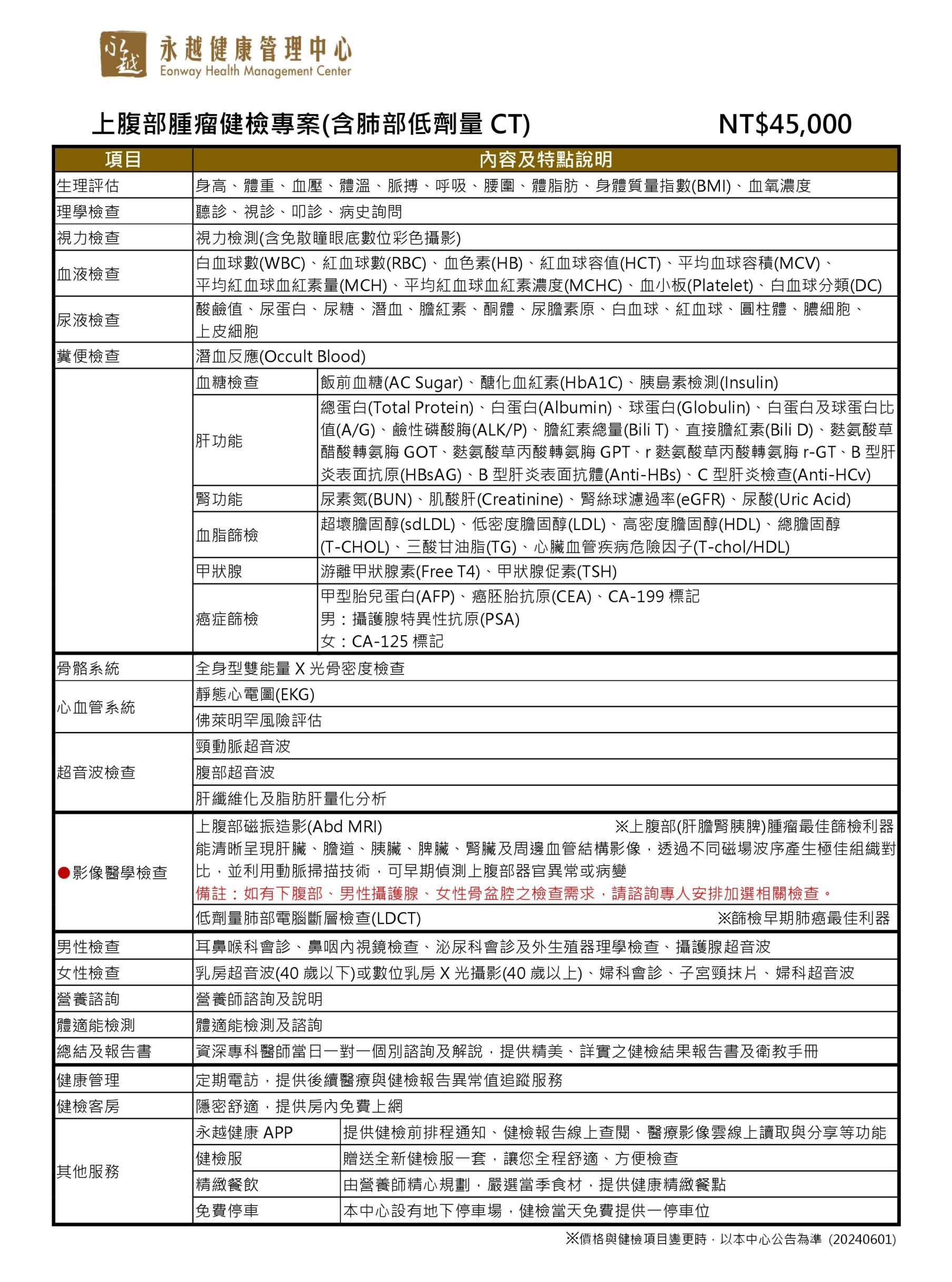 本專案以上腹部MRI檢查為主軸,篩檢肝、膽、胰、脾、腎器官,檢查是否有腫瘤、囊腫、息肉、脂肪肝、肝硬化、肝纖維化等病變,搭配血液生化檢查、X光檢查、超音波、男女性特殊項目檢查,讓病灶無所遁形,遠離疾病風險。
