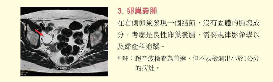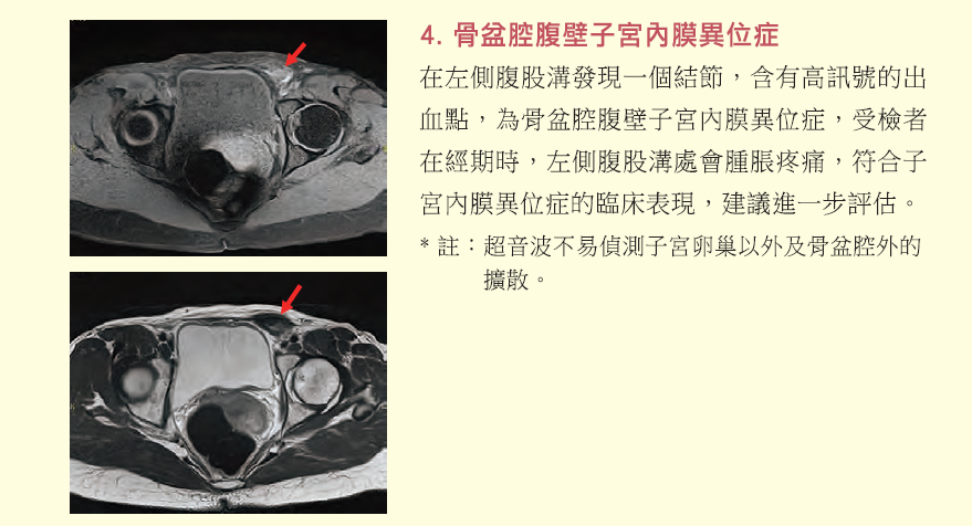 • 適應症:女性經痛、經血量過多、下腹痛、腫瘤指標異常升高(如卵巢癌腫瘤指標CA125)。