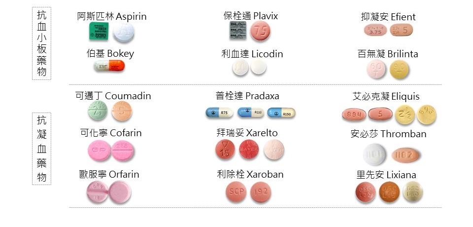 5【藥物使用】抗凝血藥物(如:Coumadin、Warfarin、dabigatran、Rivaroxaban、Apixaban、Edoxaban)或抗血小板藥物(如:Aspirin、Tapal、Bokey、Plavix、Licodin等),瘜肉切除後依醫師指示後開始服藥。