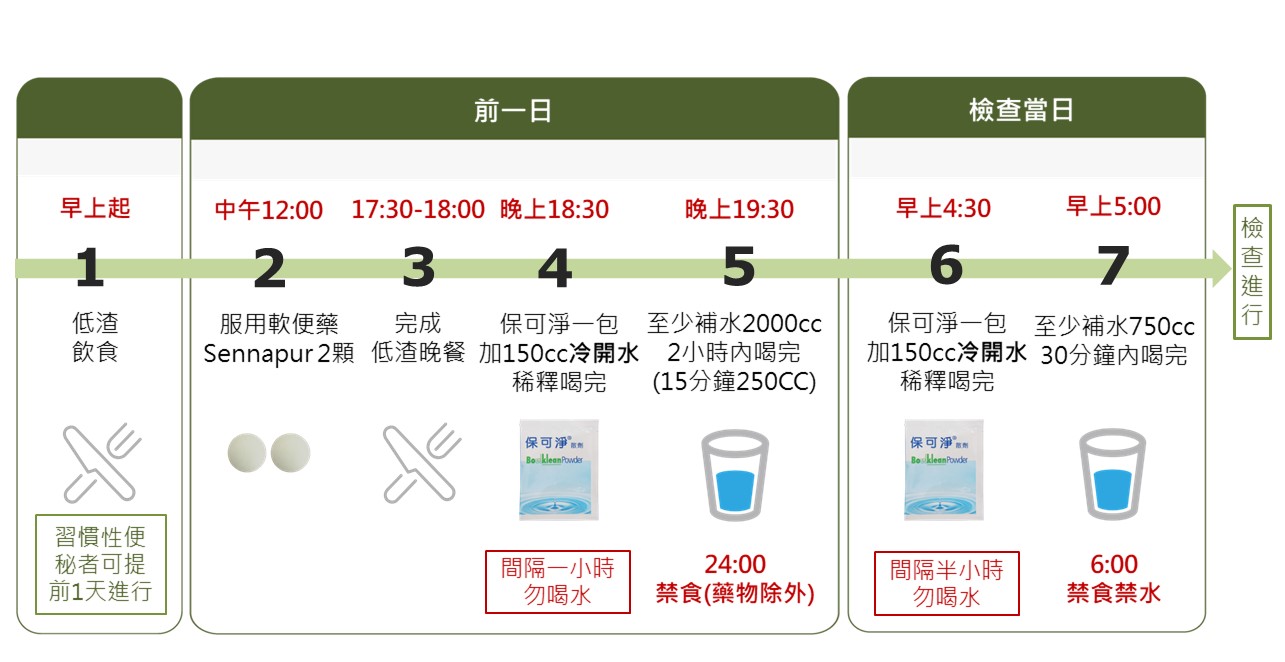 2 檢查當日,務必喝第二包清腸劑,增加清腸效果,以免影響檢查正確度。