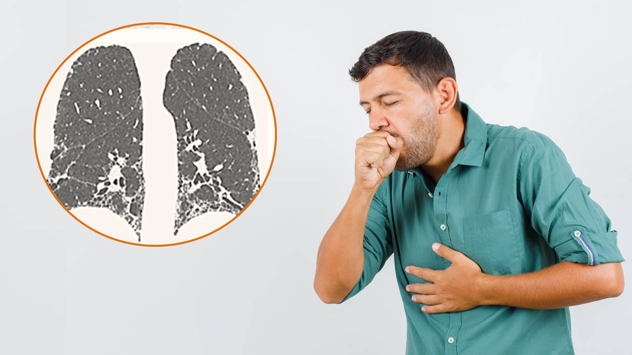 當成年患者發生無法解釋的長期運動性呼吸困難時,均須考慮特發性肺纖維化的可能;此疾病常以咳嗽、吸氣時,在肺臟兩側底部易出現細囉音及杵狀指作為表現,發生率會隨年齡增長而上升,一般多在50~70歲發病,常見於男性且有吸菸史的患者。