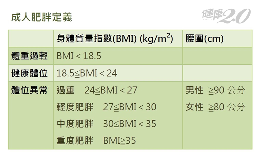 肥胖,已被世界衛生組織定義為一種「慢性病」,再也不是衣食無虞、生活富足或德高望重的象徵,反而是慢性發炎、胰島素阻抗和生活型態不良的結果。比起健康體重者,肥胖者發生糖尿病、代謝症候群及血脂異常的風險超過3倍,發生高血壓、心血管疾病、膝關節炎及痛風也有2倍風險。