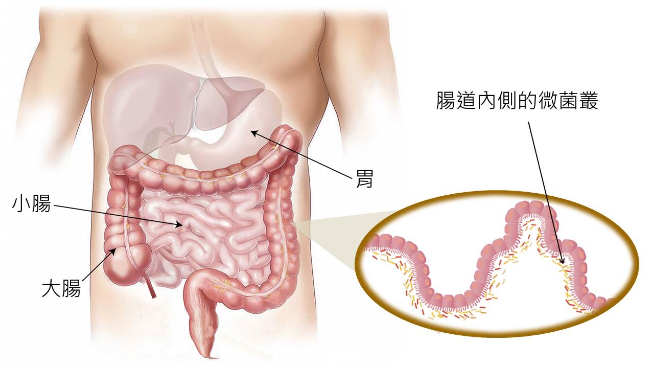 腸道是一個非常巨大的器官,成人從小腸至大腸約7~8公尺,表面覆蓋黏膜,黏膜上有無數突起的絨毛,每根絨毛上又有無數的微絨毛,總表面積達到300平方公尺,遠大於皮膚及肺部黏膜系統的表面積。這些絨毛是為了增加消化、吸收養分的效率,但相對也會接觸更多伴隨食物而入的病菌。因此,為了對抗這些病菌,在腸道黏膜下聚集了人體約70%的免疫細胞,讓腸道成為人體最大的免疫器官。
