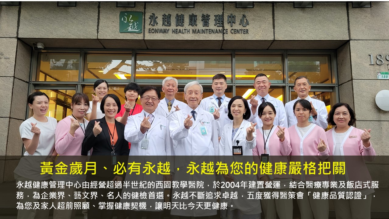 幫助受檢者「早期發現、早期治療」,永越期許成為國內健檢服務品質的標竿。再次感謝評鑑委員的專業建議及醫策會肯定。永越,如同我們的名稱,永遠追求自我超越,追求品質卓越。