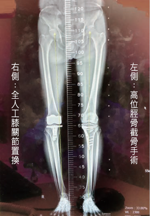 膝關節對行動的影響極大,因此民眾常擔心做了關節置換手術後,需要好幾個月的療養修復。在過去將近一千例人工關節手術中,讓我印象最深刻的,是一位六十七歲的阿伯,他在嘉義山上種植咖啡,咖啡飄香全台,卻也犧牲了一雙膝關節,經過檢查診斷右膝為第四期,左膝為第二期退化性關節炎。由於膝蓋疼痛讓他無法工作,因此我建議阿伯接受右側全人工膝關節置換;左側屬於中期關節退化,建議接受高位脛骨截骨手術,保留左側原生關節。