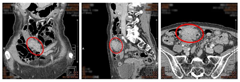 ▲在橫結腸發現異常腫塊,經切片診斷為大腸癌