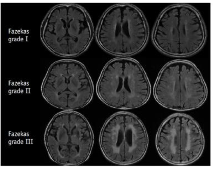 ( 圖二)血管性失智症之小血管缺血病變白質斑塊分級。│AJR 1987;149:351-356
