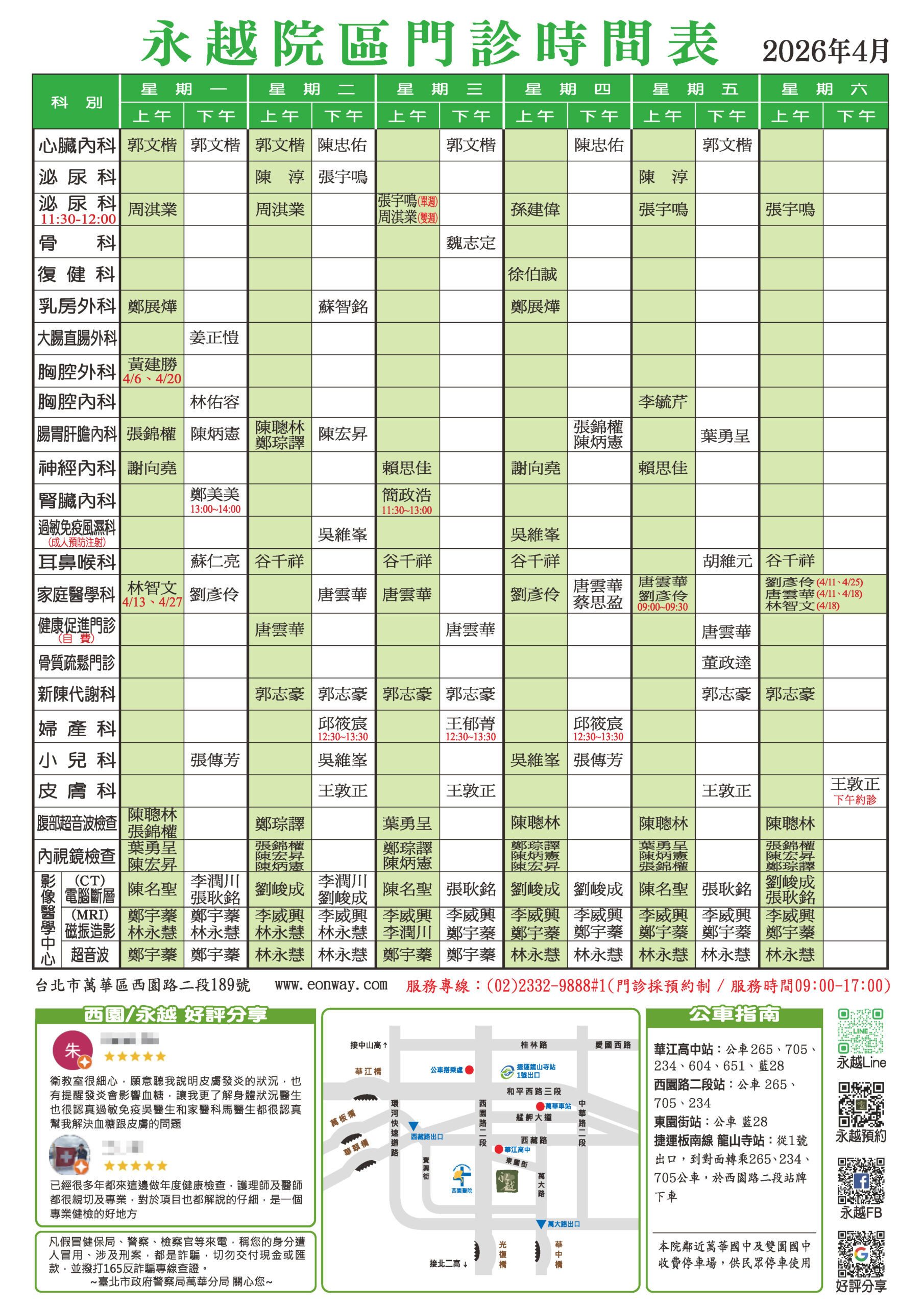 3月門診表下載 4月門診表下載