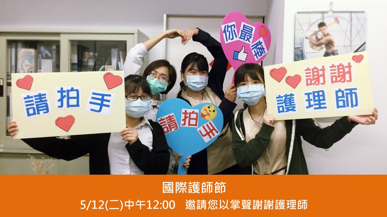跟診協助醫生診斷 記錄病患用藥和各種病徵 照顧病患、協助服藥與衛生教育 提供病患家屬治療建議 這些只是護理師眾多工作項目的其中幾項 很多人說護理師是白衣天使 其實護理師跟大家一樣 是認真努力工作的平凡人 會有壓力 會累 也會覺得挫折 但如果您願意給護理師一點鼓勵 一句謝謝 一陣掌聲 就能讓他或她在辛苦的工作中感受到更多溫暖❤ 明天是國際護師節 邀請您於5/12(二)中午12:00 以掌聲鼓勵感謝堅守在防疫第一線的護理師們❤👏